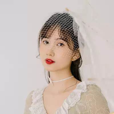 Xiaowu]Retro simple short covering veil soft net short veil bride wedding photo travel jewelry hair accessories