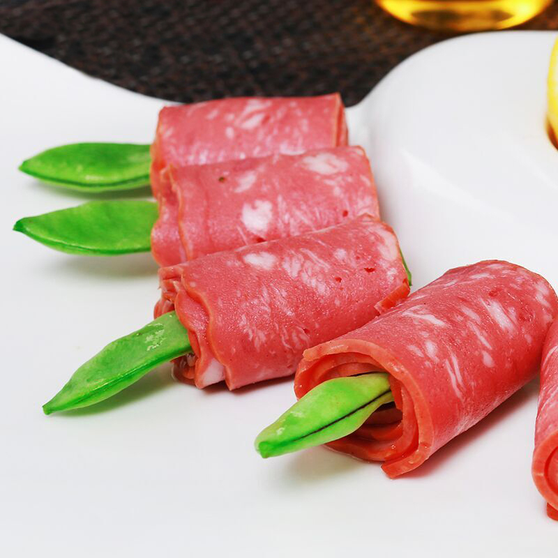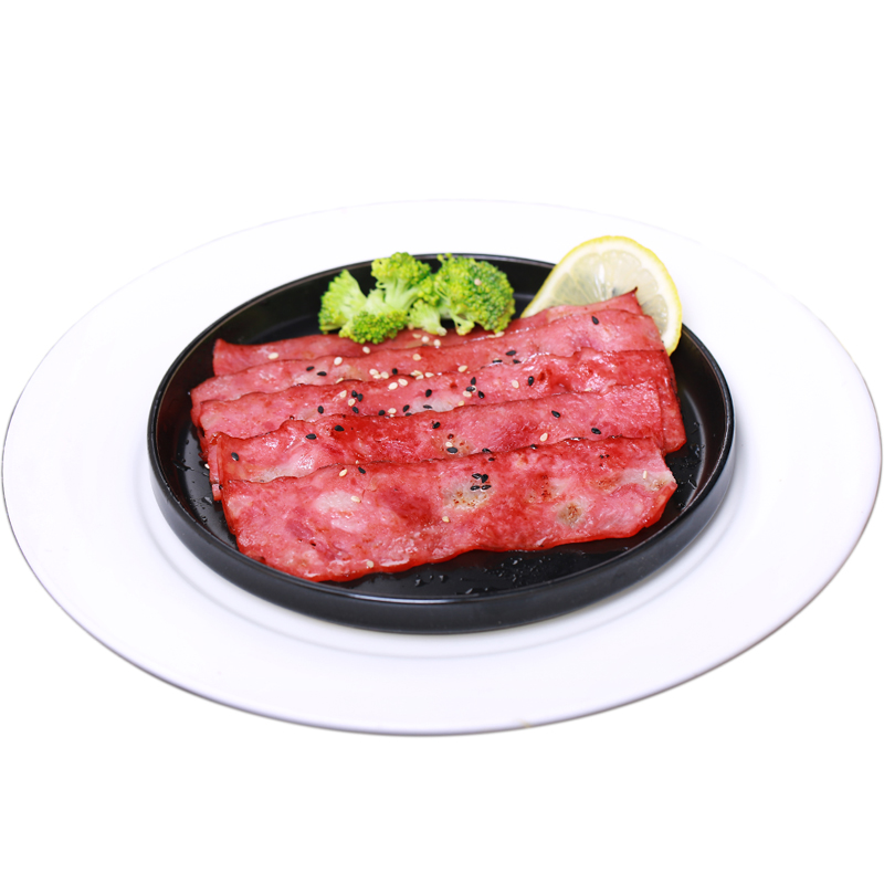 Breakfast bacon slices hand grab toppings 1000 grams of home baked commercial pizza sandwich tenderloin