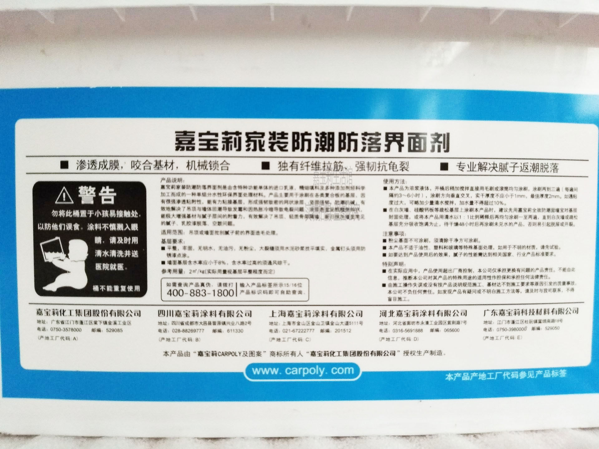 Jiabaoli paint waterproof decoration auxiliary materials home decoration moisture-proof anti-drop interface agent 5KG JFS803