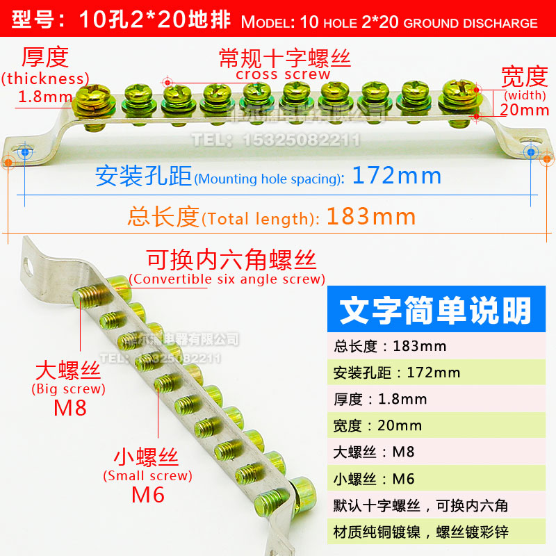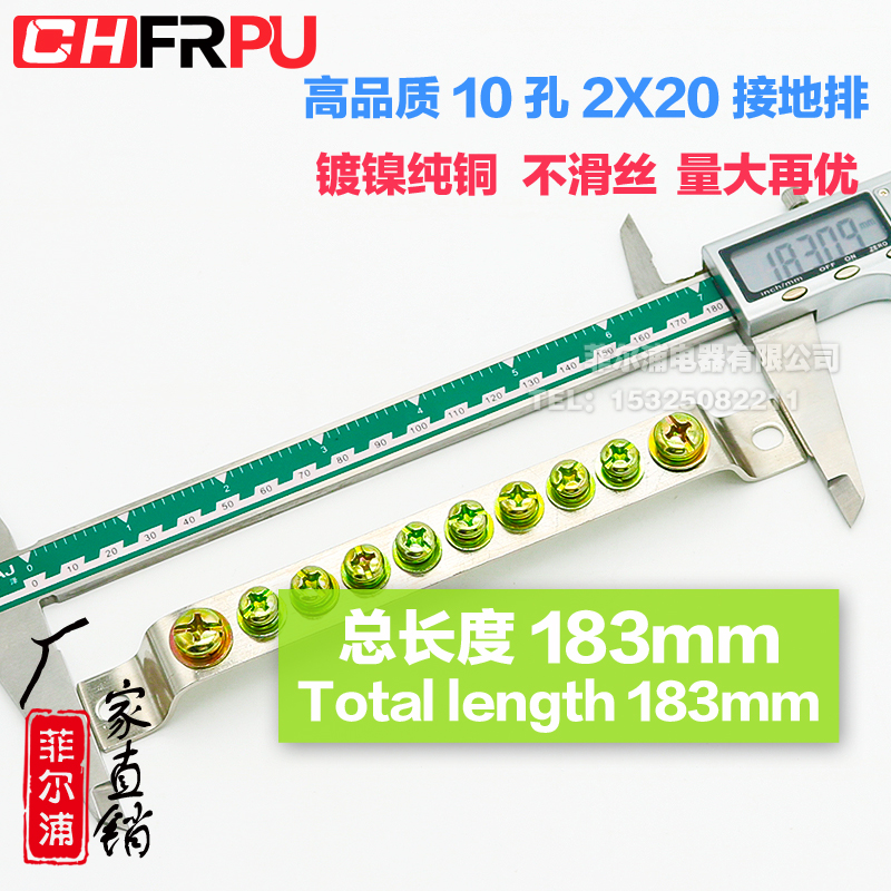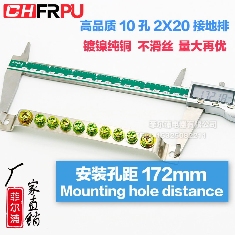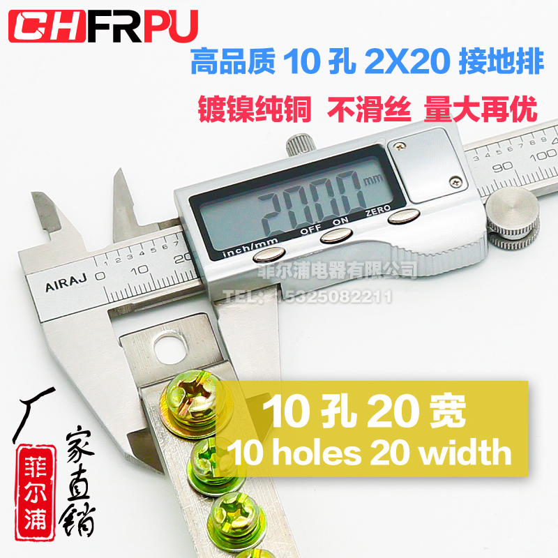 Factory direct 10-hole ground row 2*20 zero ground row ground wire terminals 20 wide distribution cabinet box grounding brass row