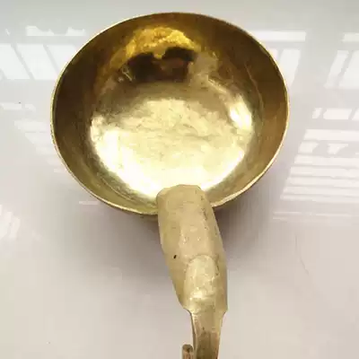 Pure copper water scoop old-fashioned hand-forged water scoop thick brass water spoon short handle copper scoop copper scoop home