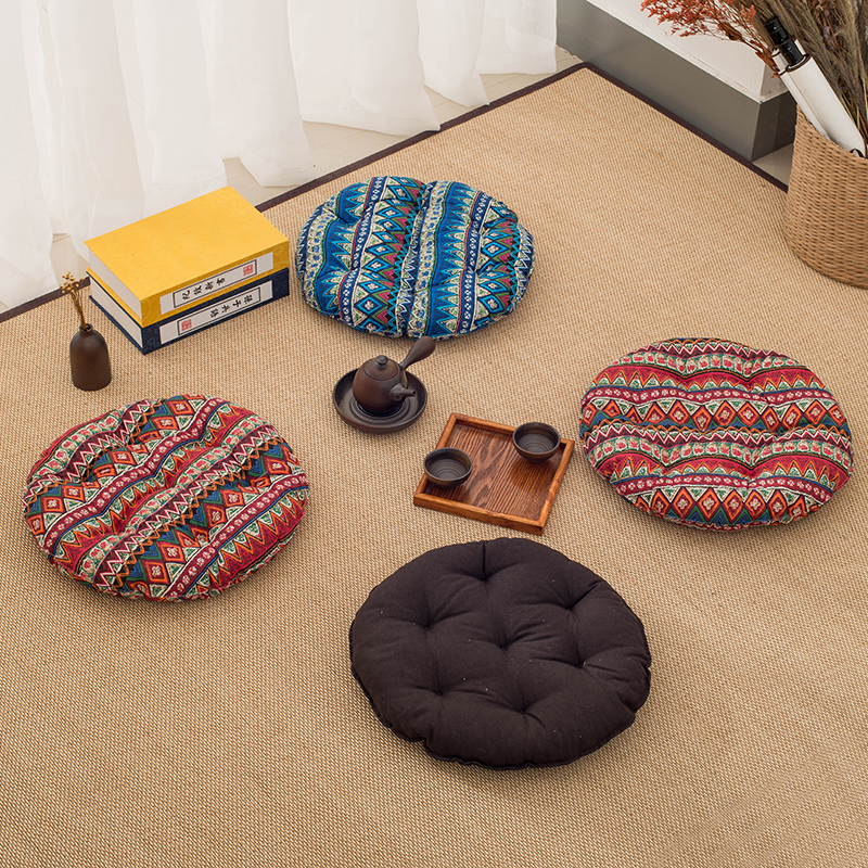 Bushel Cushion Tian Garden Wind Cloth Art Linen Round Floating Window Mat Thickened Yoga Floor Mat Computer Chair Butt Mat-Taobao