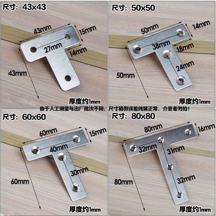 Thickened stainless steel T word flat angle code furniture piece 5 gold fitting corner code fixing piece T shaped angle code angle iron