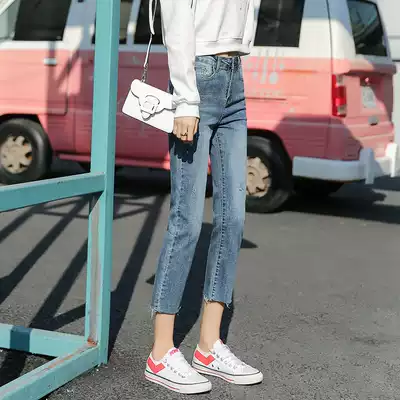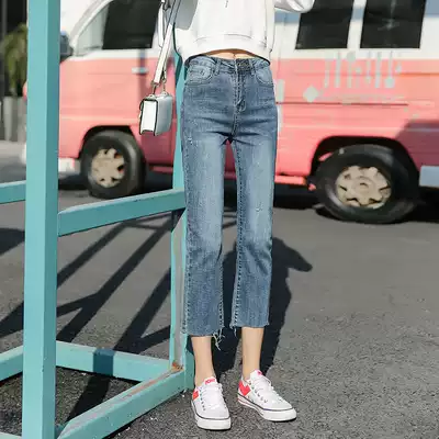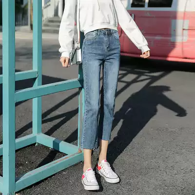 Jeans women's 2019 Autumn New High waist eight points Korean version of loose wide legs thin nine Joker straight pants