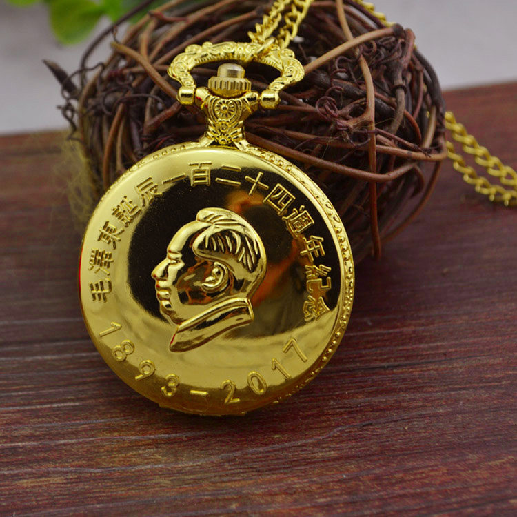 Nostalgia Chairman Mao pocket watch anniversary commemorative flip cover Mao Zedong image vintage necklace watch commemorative gold watch quartz