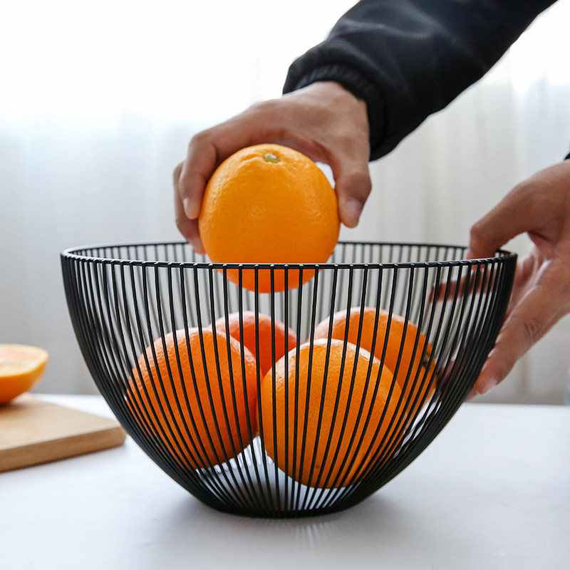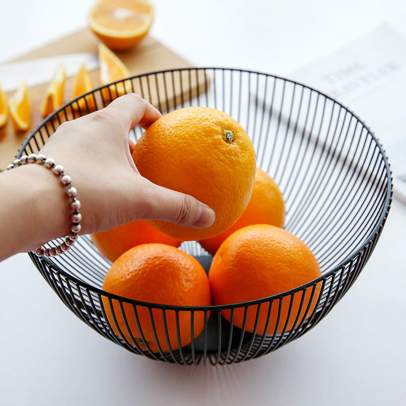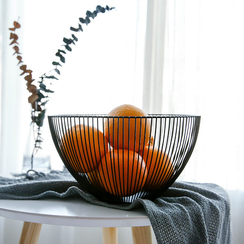 Nordic minimalist fruit basket living room creative fruit plate drain basket simple home wrought iron fruit pot storage basket black
