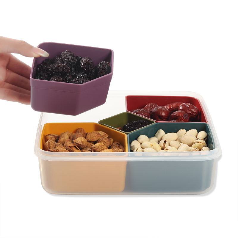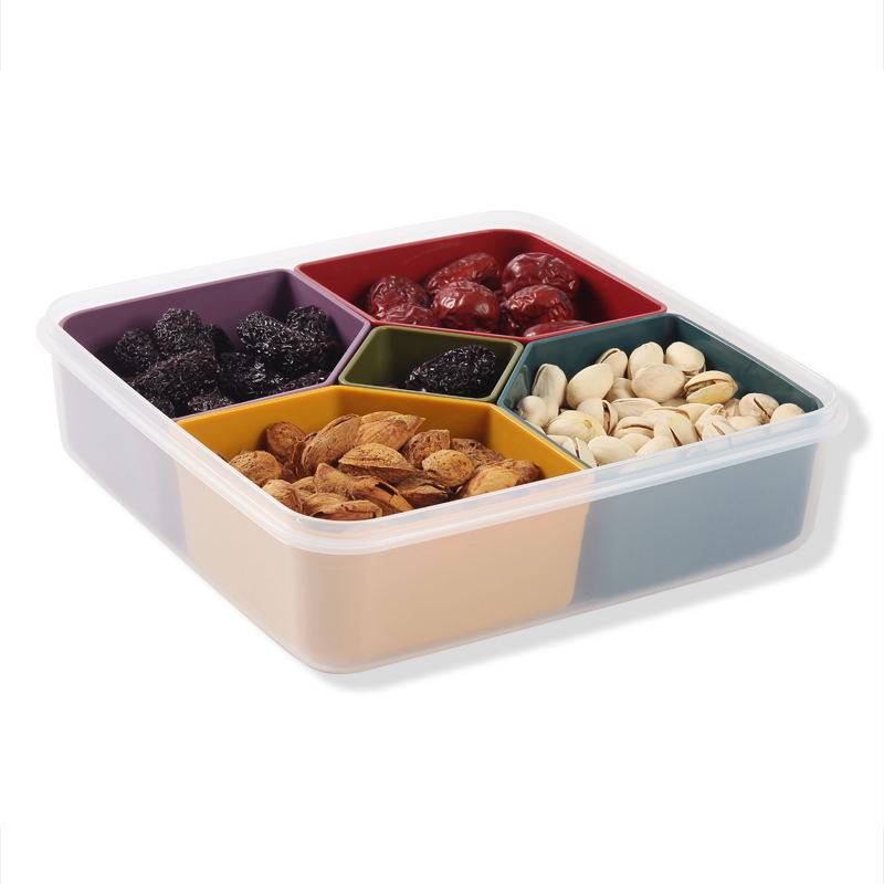 Japan imported dried fruit plate with lid compartment living room creative plastic snack nut box sealed moisture-proof candy plate