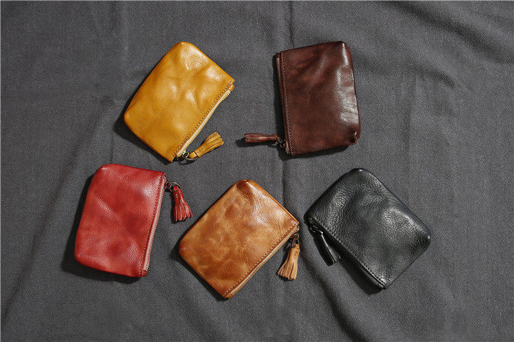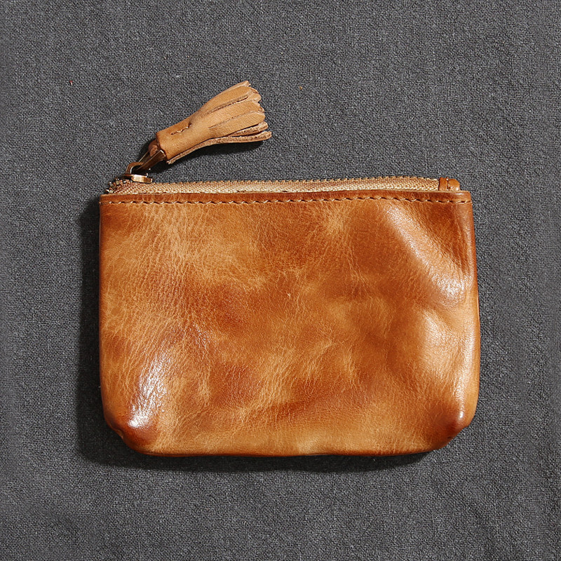 Retro old first layer leather mini coin coin coin purse leather zipper short clip men's and women's wallet card bag 4
