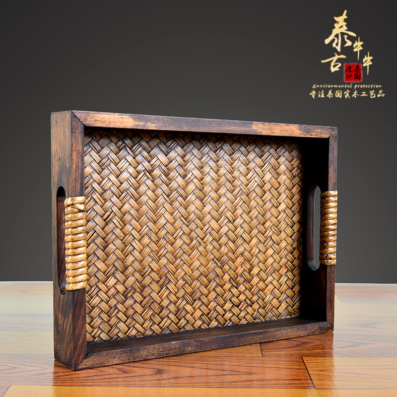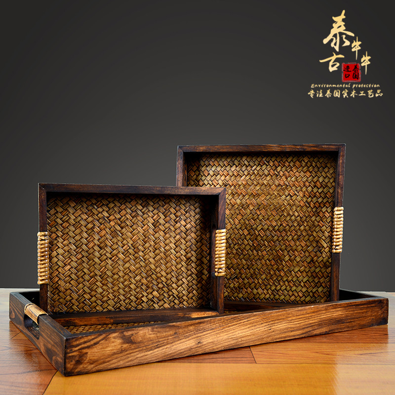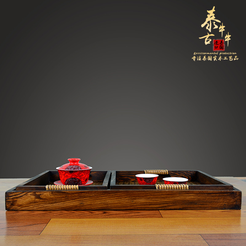 Thailand retro tray solid wood bamboo tea tray household tea cup tea set hotel beauty salon special retro tray