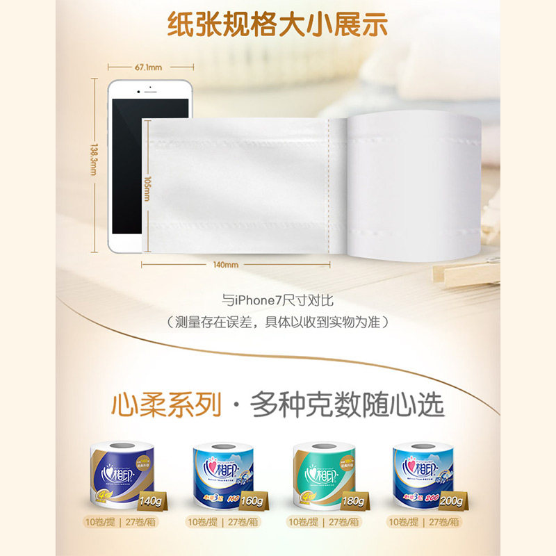 Heart Phase Print Rolls Toilet Paper with Core Large Volume Home Whole Boxes 27 Rolls Affordable stock Rolls Sanitary Paper Towels Family toilet paper