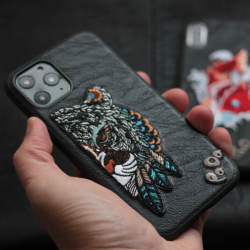 PADA embroidery iphone11promax mobile phone protective shell lion tiger apple xs max fish XS silicone 8plus silica gel 11pro full pack 6P anti-fall