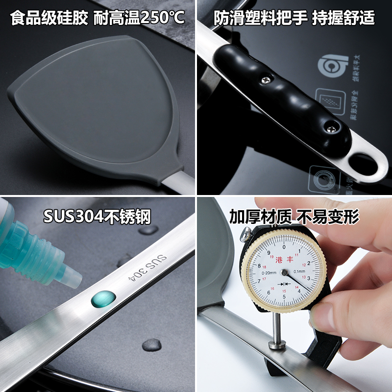 304 stainless steel pan shovel without injury pan not stick to pan special silicone pan shovel high temperature resistant fried vegetable shovel kitchenware home