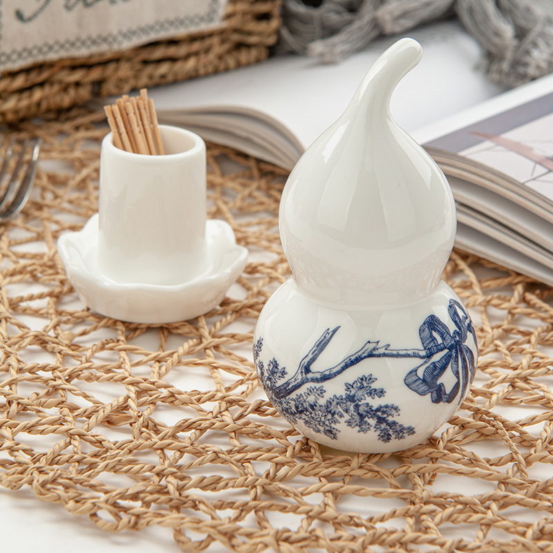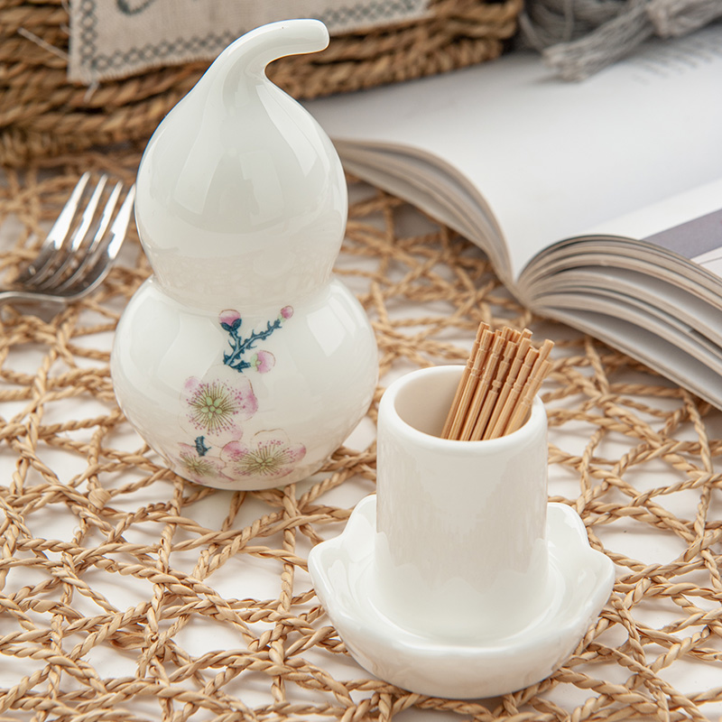Colorful bone porcelain gourd toothpick cylinder fashion toothpick cage living room home pendulum decorated cotton stick containing hotel toothpick jar