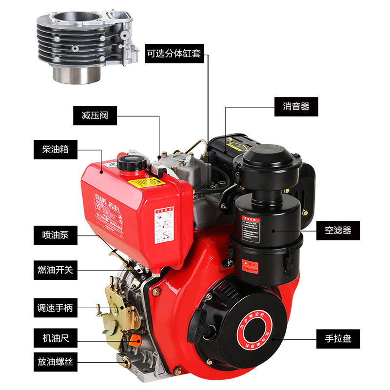 Changzhou 195 Single-bar air-cooled diesel engine 186FA 9 horsepower direct spray generator micro-tiller engine