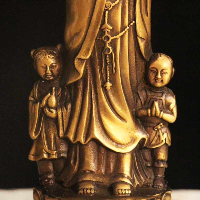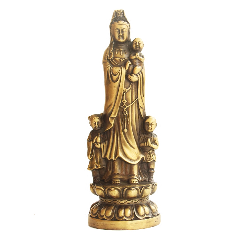 Pure brass send son Guanyin Buddha statue worshiping home Bodhisattva station like cuddson begging for a green feng shui swing