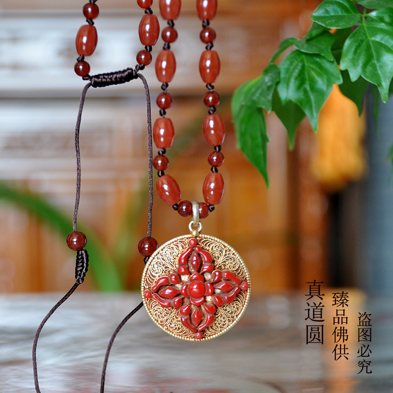 Nepal silver gilt necklace pendant Filigree inlaid exquisite cross pestle body Agate chain necklace pendant