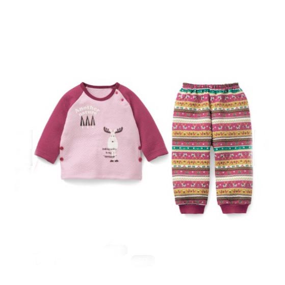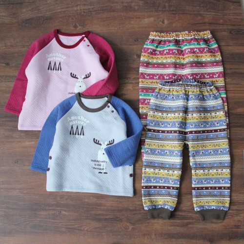 Export japan thousand children's homewear set autumn and winter boys and girls three layers of warm air cotton pajamas