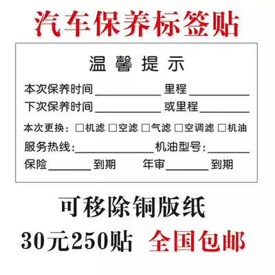 Car maintenance notice stickers paper replacement oil filter reminder stickers label stickers 30 yuan 250 stickers