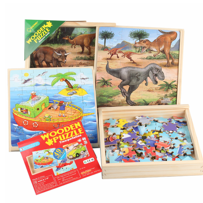 Boys transportation jigsaw puzzle children's wooden 49 dinosaur jigsaw puzzle benefit intelligence toy 345-year-old girl gift