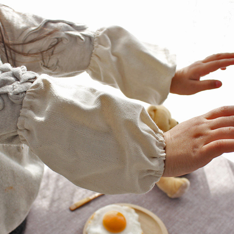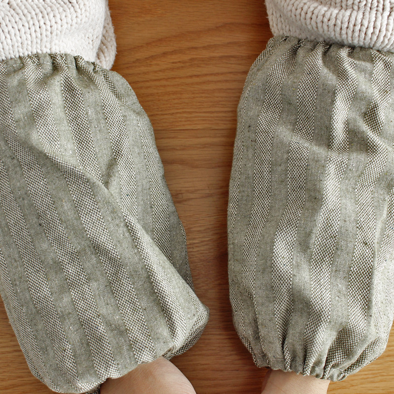 Japanese solid color adult children parent-child sleeve anti-fouling cleaning office kitchen housework sleeve cotton linen stripe fabric