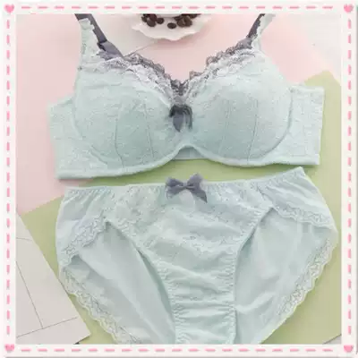 Candy color large size cute bra full cup thin gathered girl underwear set Cute girl receiving a pair of breasts with steel rim CD