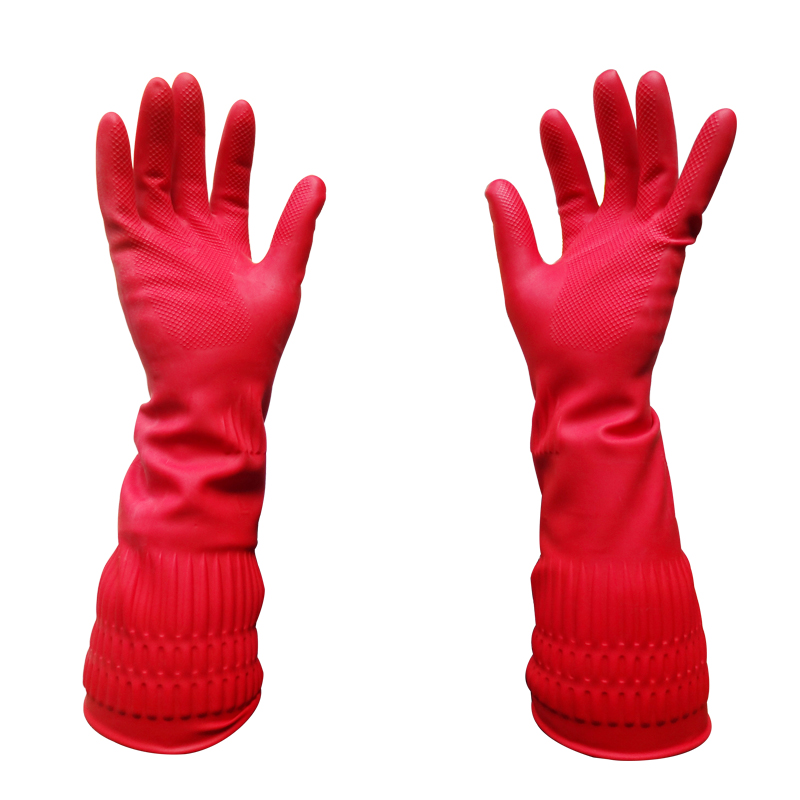 Home lengthened latex gloves waterproof thickened rubber wash clothes for domestic dishwashing brushed kitchen with cleaning