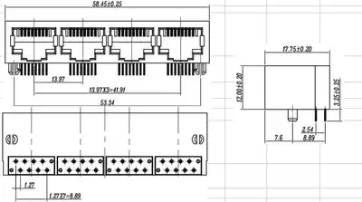 RJ45 connector 90 degree 56B type length 18 Non-screen without lamp without filter 1*4 crystal head Network interface socket