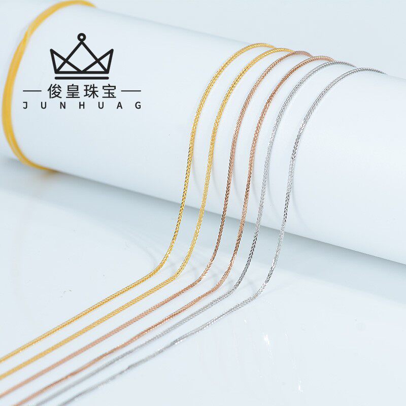 Junhuang Jewelry 18K Yellow Gold White Gold Rose Gold Chopin Chain Plain Chain Bare Chain Fashion Versatile Necklace