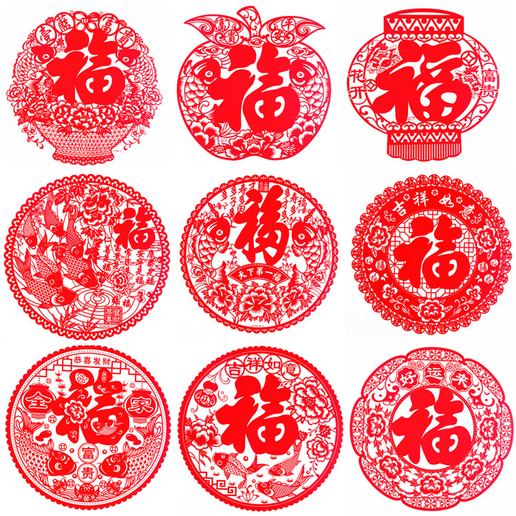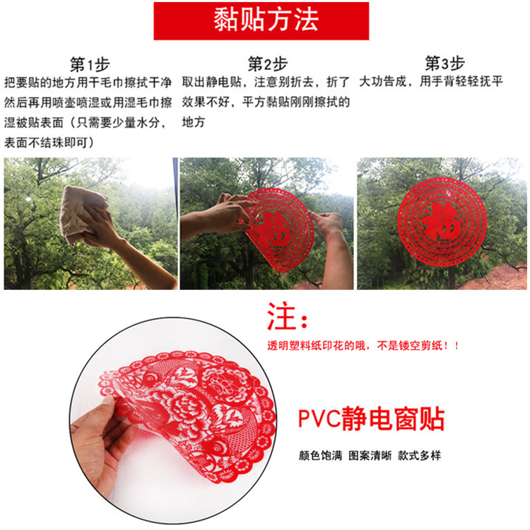 2023 Rabbit Year Fu Character Static Sticker glass sticker window applie with wall stickup paper cut paper New Year Spring Festival Joe relocating to new house-Taobao