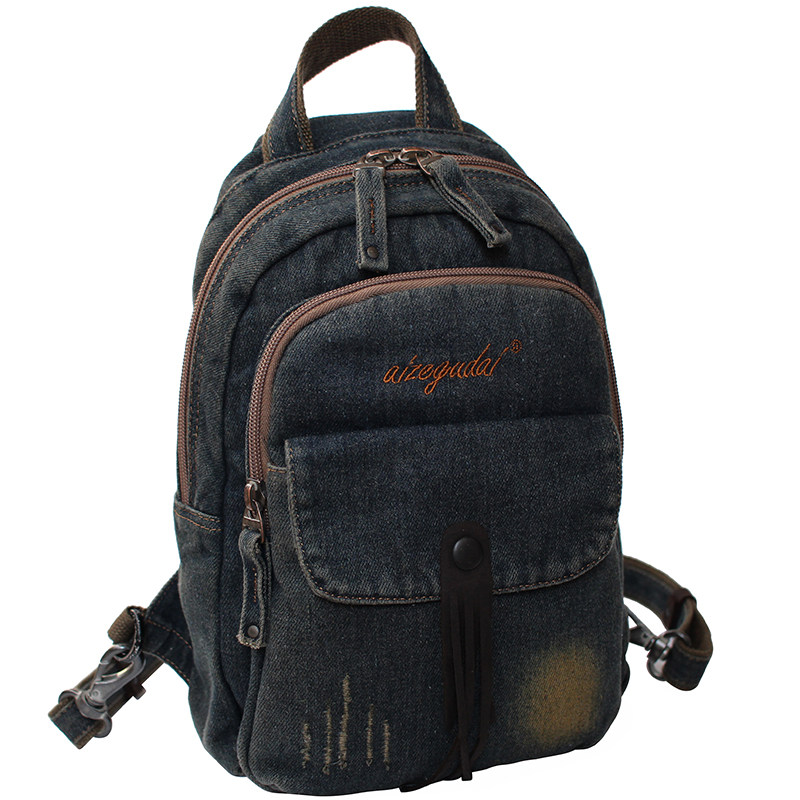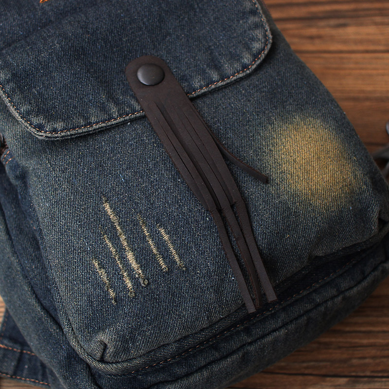 Original new tassel women's bag casual retro denim backpack chest bag single-shoulder backpack men's bag multifunctional trendy