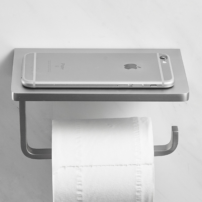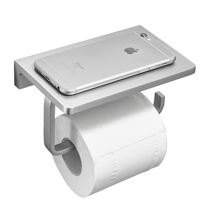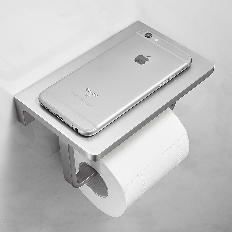 Space aluminum mobile phone paper towel rack Bathroom shelf Brushed roll toilet paper rack Hotel powder room toilet paper rack Wall hanger