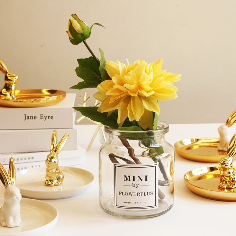 Single transparent vase (send sticker) single green small bouquet with single yellow large Lidaisy single purple small bouquet with single white large Lireia