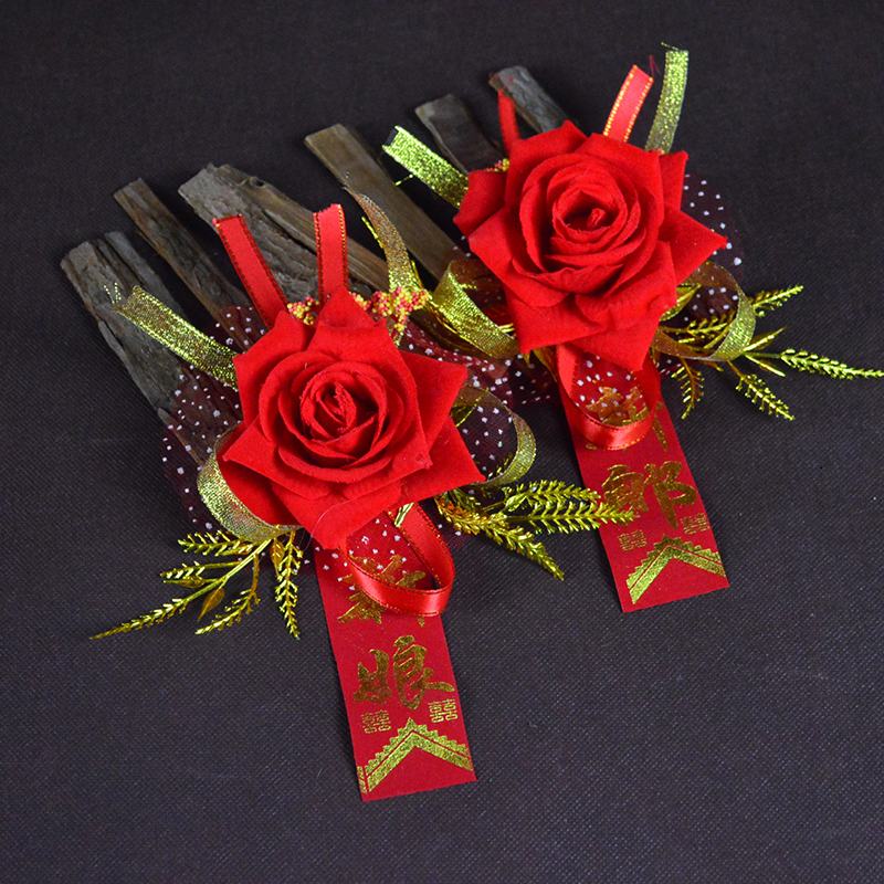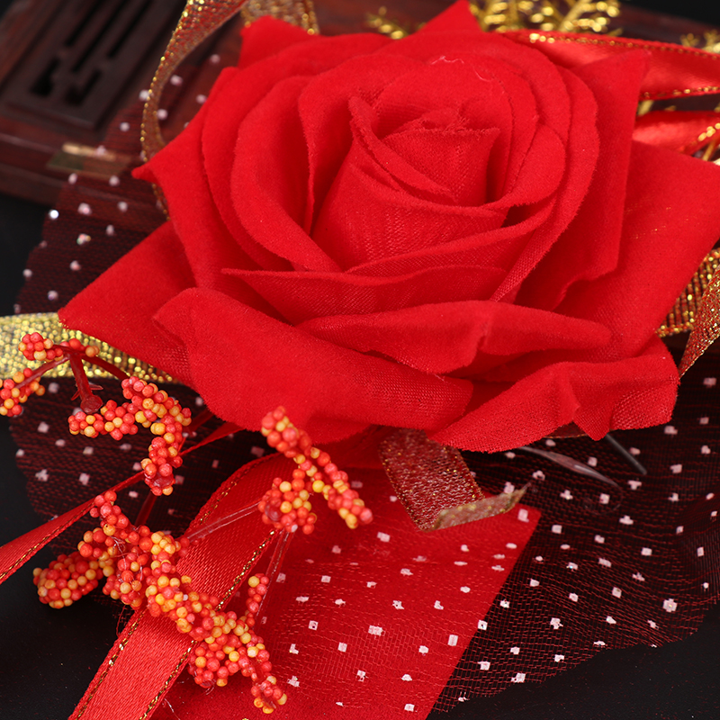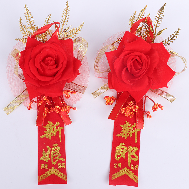 Wedding supplies festive Chinese red bride and groom corsage father mother best man bridesmaid corsage set