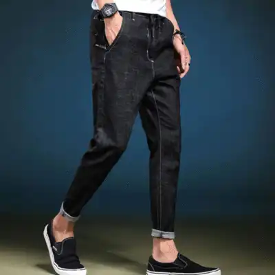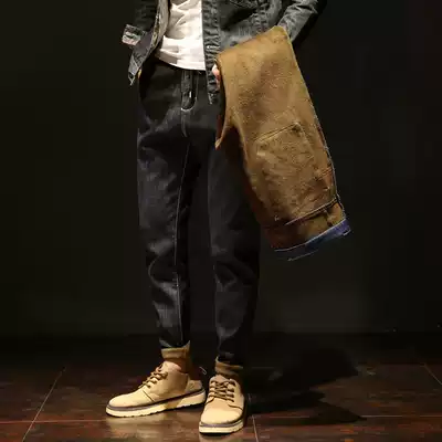 Jeans winter new men's wild plus velvet thickened stretch loose men's large size pants harem pants tide