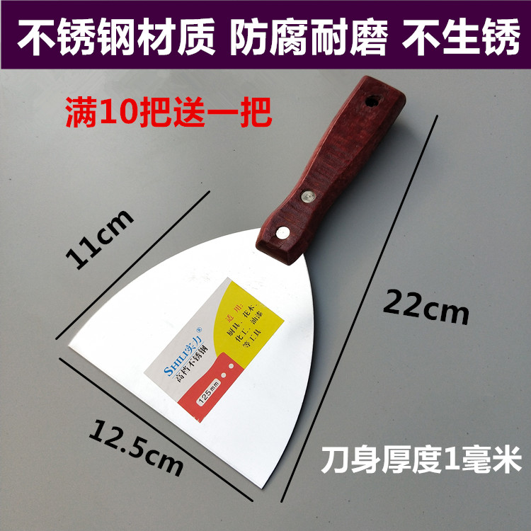 Thickened wood handle putty knife Stainless steel blade Batch soil knife Batch knife cleaning scraper putty knife Solid wood
