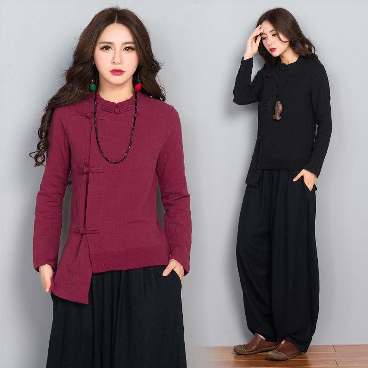 Spring Autumn China Wind Cotton Numb Taiji Clothes Women Jacket Blouses Fashion Taijiquan Style Too for a morning practice suit