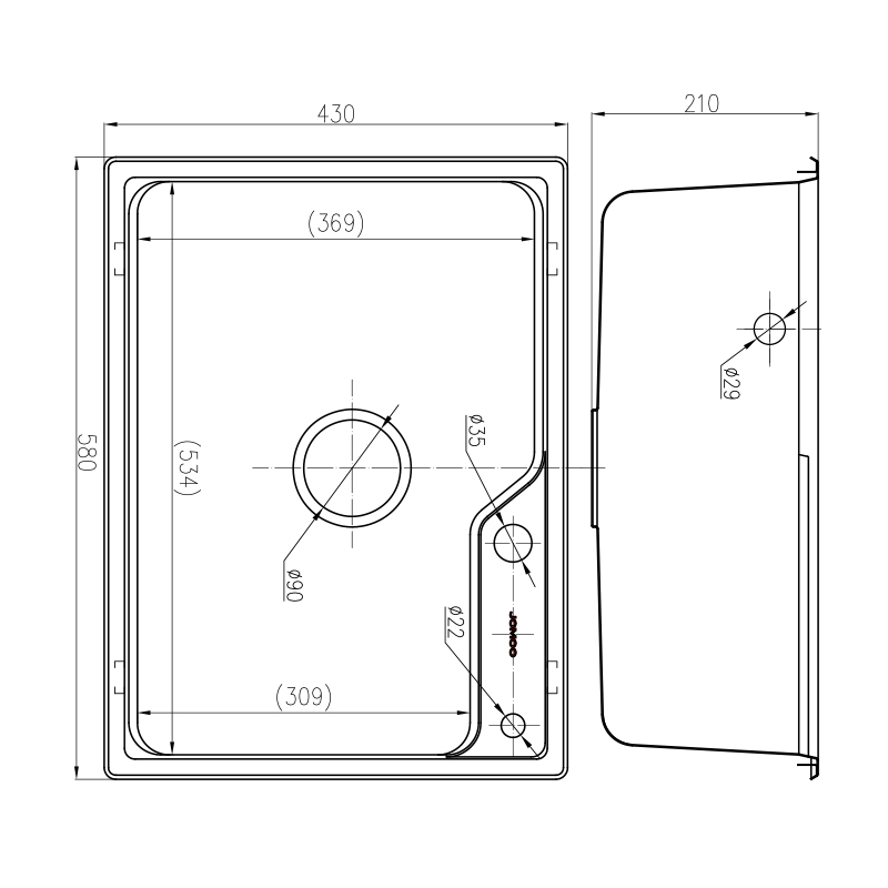 580X430X210 mm in the 580X430X210