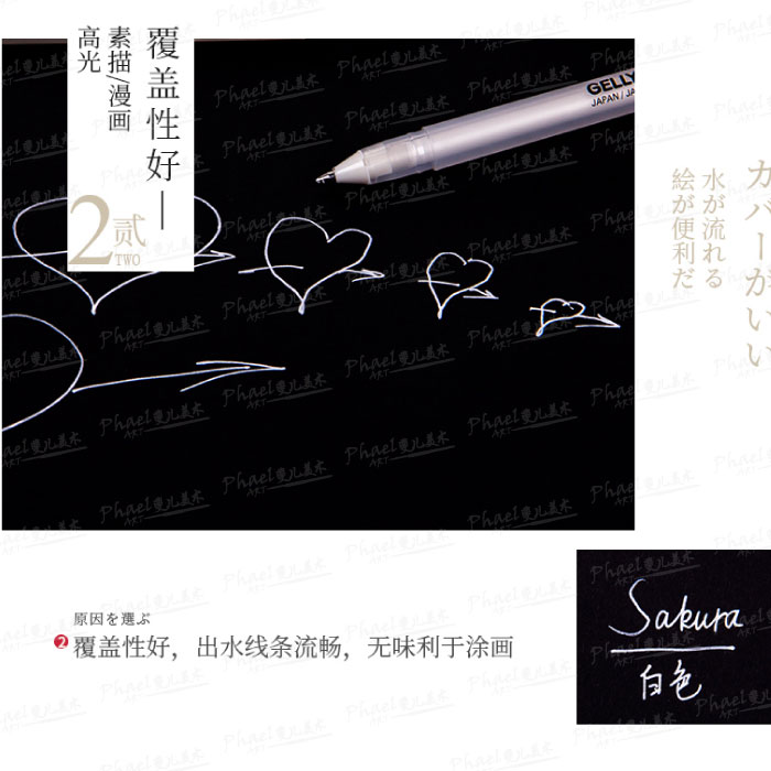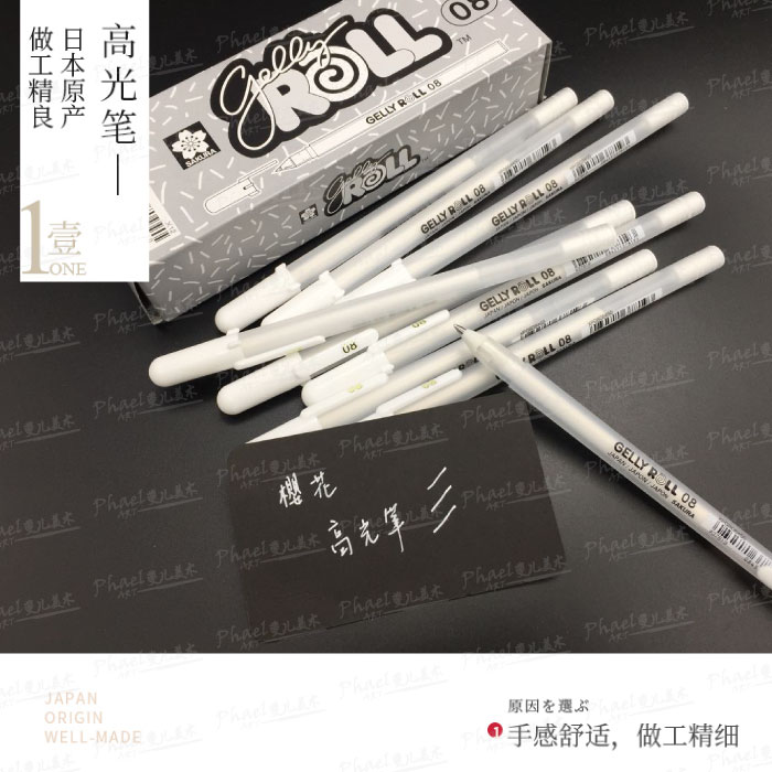 Japan SAKURA CHERRY BLOSSOM PURE WHITE HIGH LIGHT PEN LEAVE WHITE POLO BLACK CARDBOARD WHITE THREAD PEN WHITE COLOR LEAD HAND PLOTTER