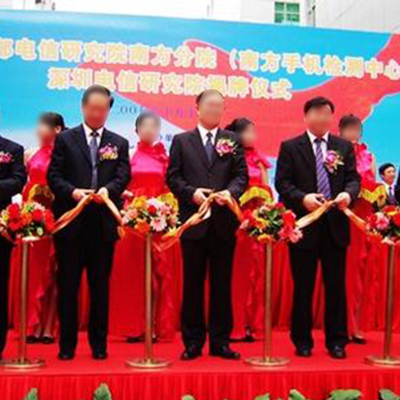 Large red flower ball 1 dragon phoenix gold scissors 1 cut down the velvety brocade 1 piece of ribbons (gold) 1 cut of the ribbons (silver) 1 1 person cut the nibals of the ribbons 2 the ribbons 2 people cut the ribbons