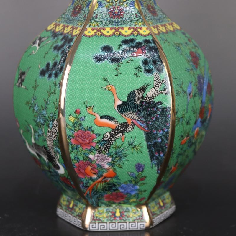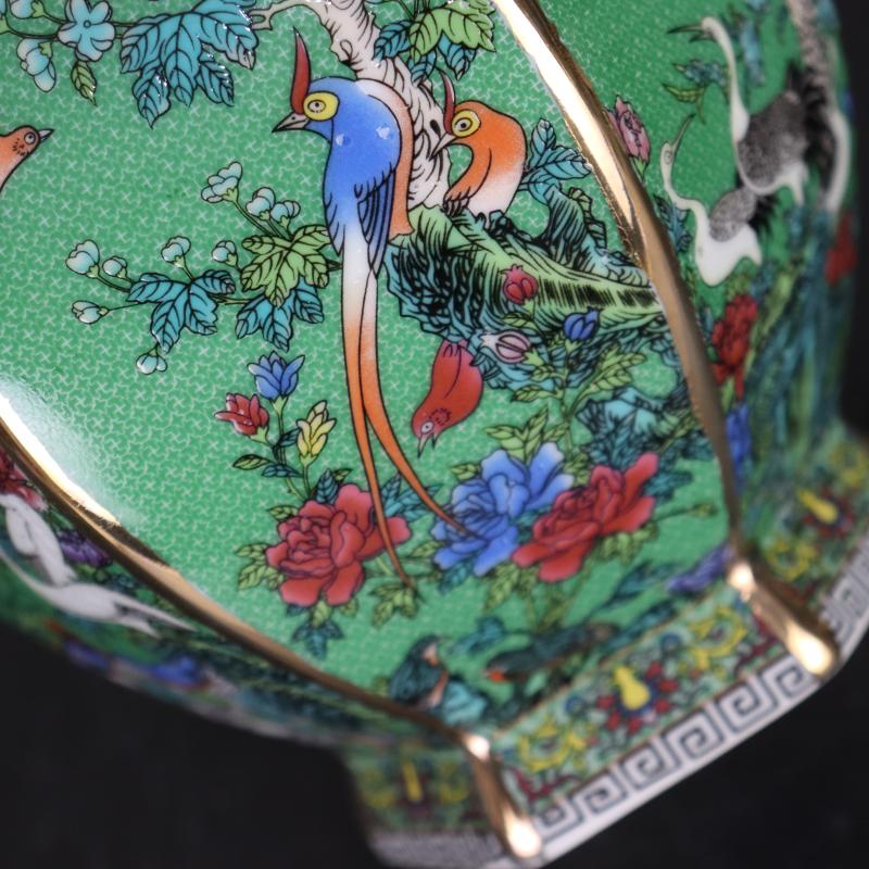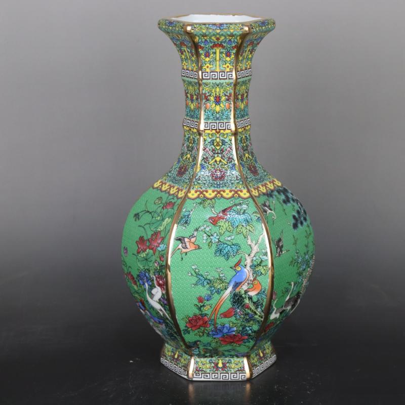 Qingqian Sketching Gold Enamel Color Hexagonal Flower Bird Bounty Pleasing Craft Gifts Swing Adorned Antique Porcelain Antique Ancient Play Collection