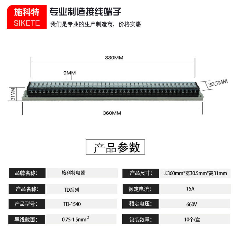 TD-1540 post head terminal row 15A40 bits wiring iron rail combined wiring terminal connector td