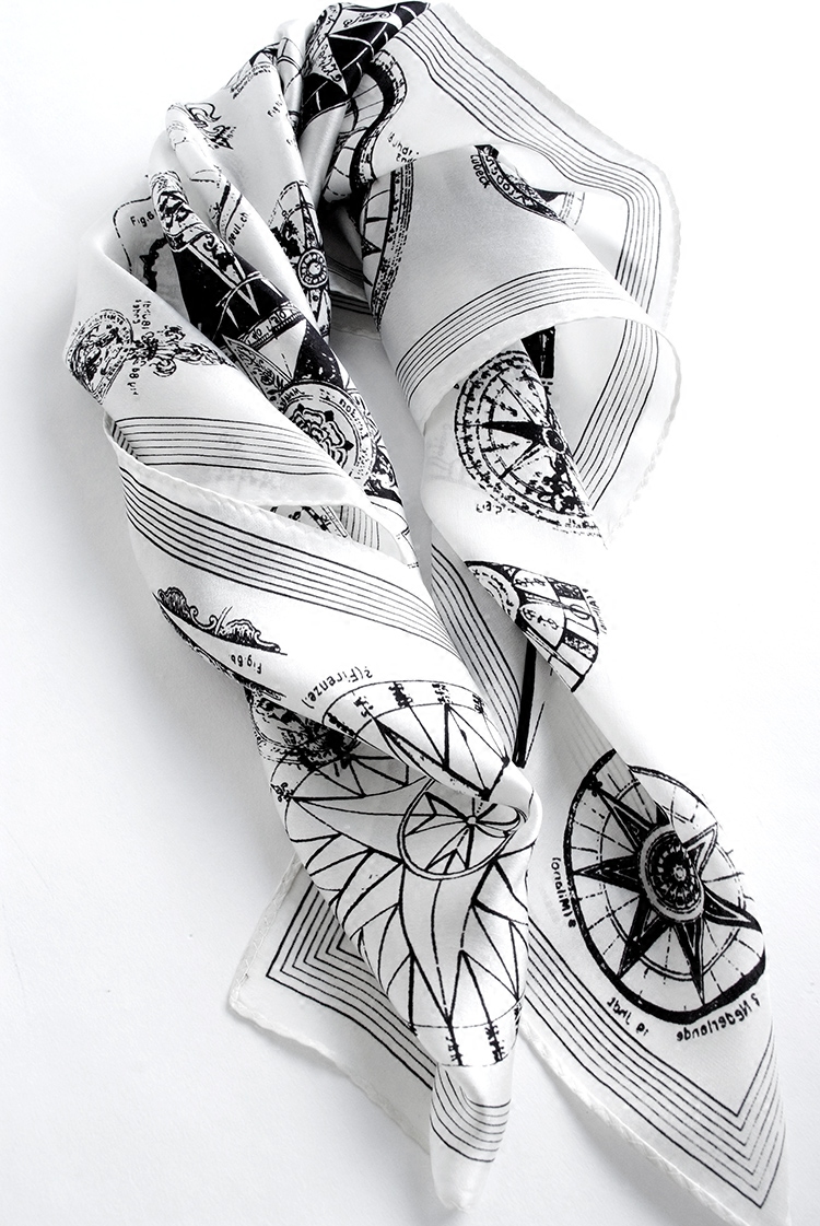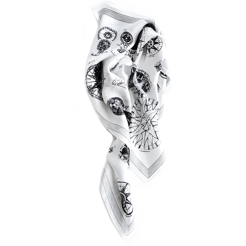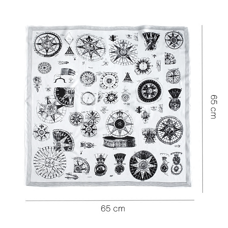 OFFIY-classic compass pattern black white 100% mulberry silk scarves for professional business OL Japanese silk scarves