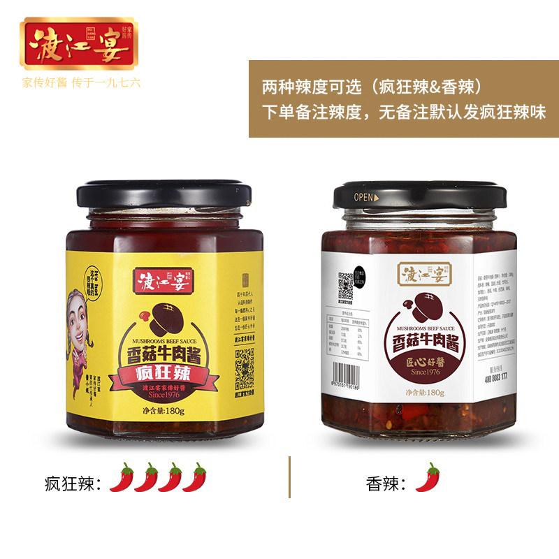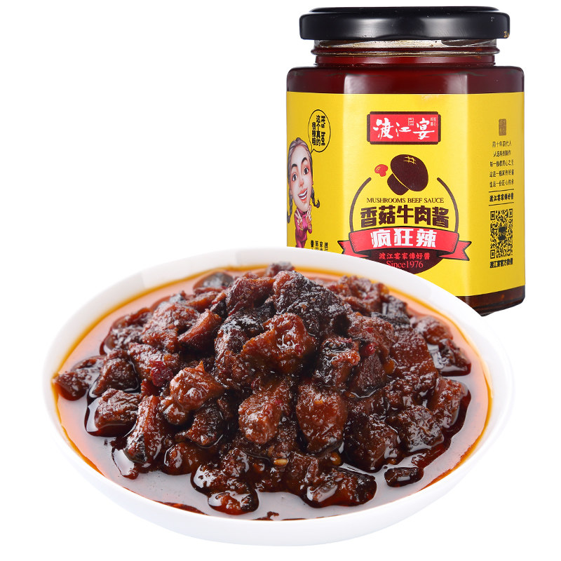 Watanjiang Banquet Crazy Spicy mushrooms Beef Sauce with Rice Sauce Dish to Eat Homemade Handmade Chili Sauce Bottled Mixed Pasta Sauce
