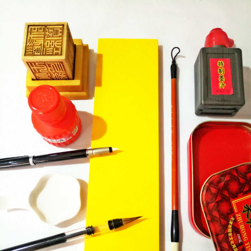 Taoist Supplies: Taoist Set, Writing Brush, Soft Pen, Stamp Base, Red Clay Printing Table, Ink Butterfly