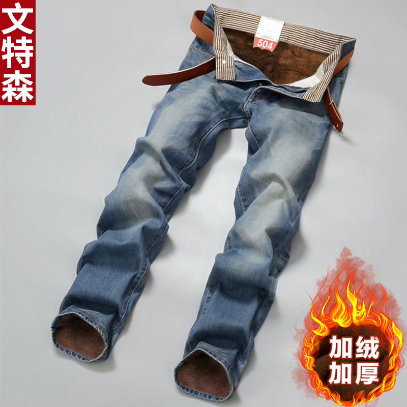 Ventyson Winter Jeans Men's Cashmere Straight Drum Men's Pants Han Edition Youth Casual Workout Warm Jeans Long Pants