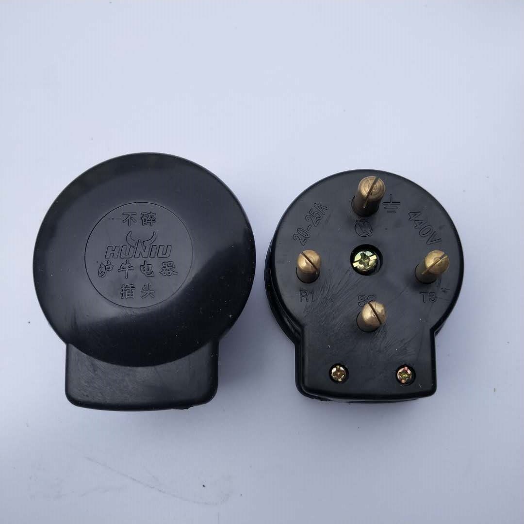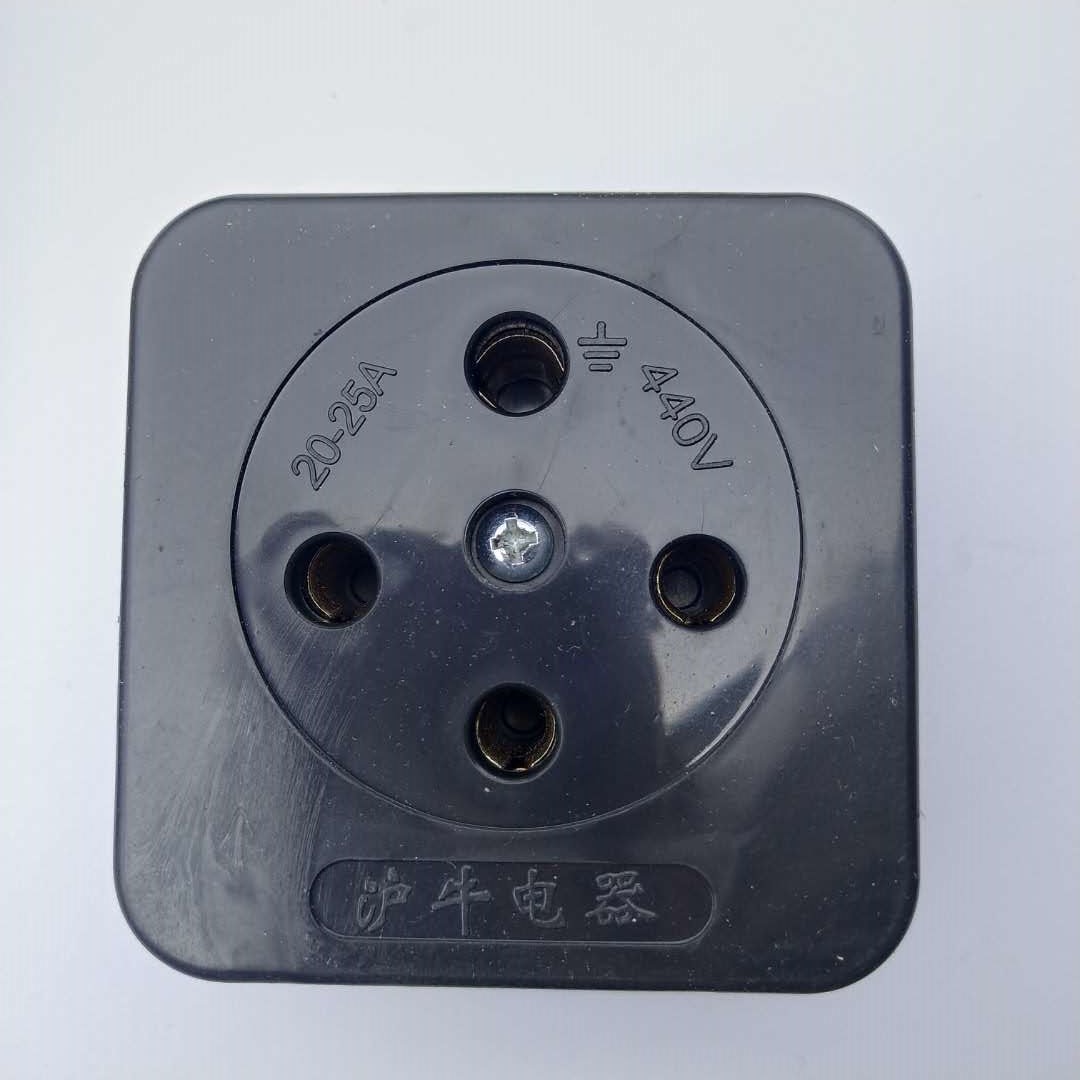 Shanghai ox black three-phase four-wire circular four-hole socket 20-25A 380-440V construction work without breaking the plug