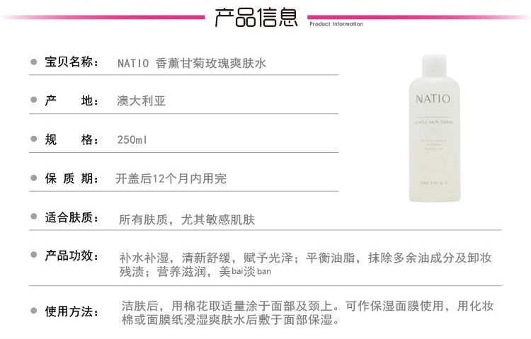 NATIO ROSE FOREIGN CHAMOMILE Moisturizing and moisturizing moisturizing and refreshing acne-controlled oil to close the mouth and acne black head