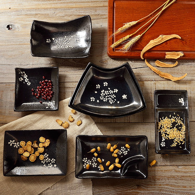 Three-point ceramic Japanese square plate sushi plate breakfast plate rectangular plate barbecue plate household tableware