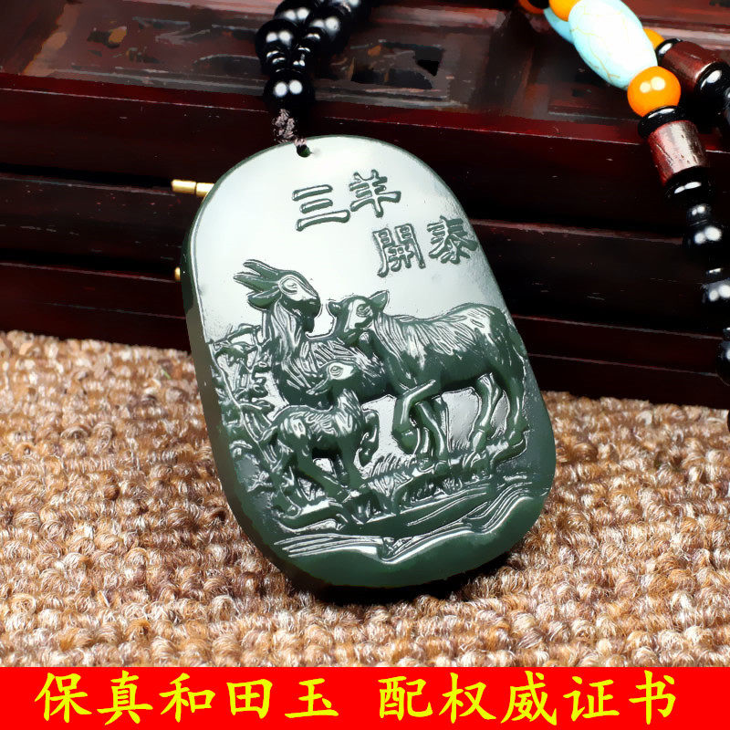 Natural Xinjiang and Tian Yuqing jade Sanyang Kaitai jade pendant pendant male and female jade pendant male and female jade pendant pendant