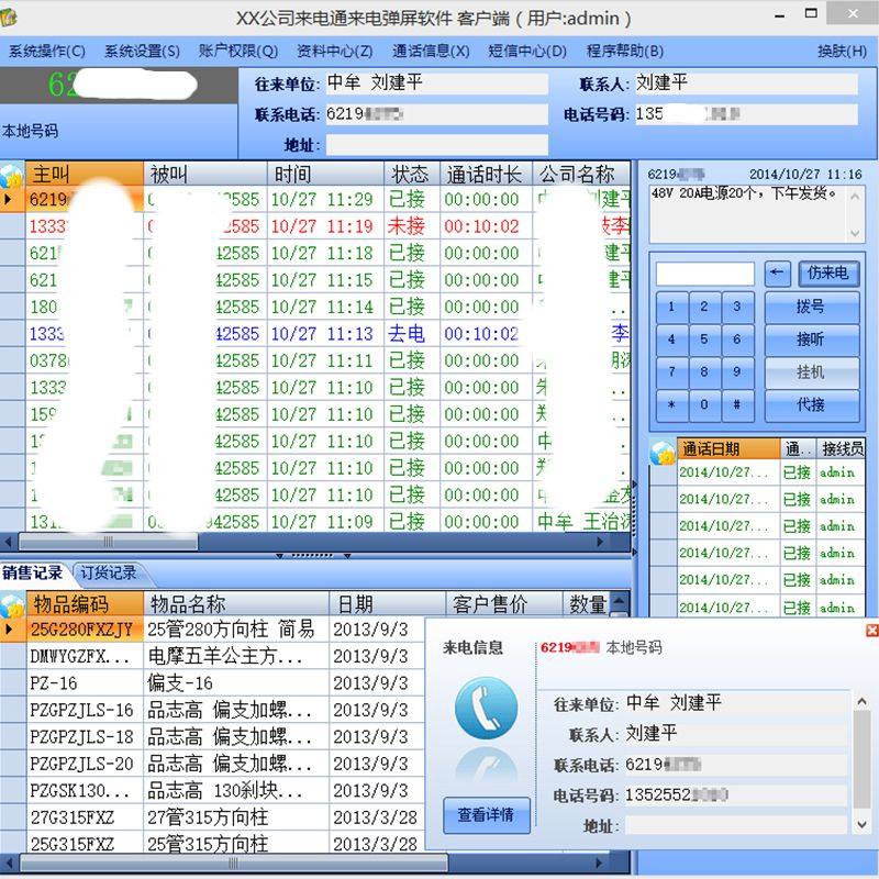 Incoming CallErnel Pop-up Screen SoftwarePhone Management Software Recording Computer Pop-up Customer Profile 1-Line Enterprise Edition